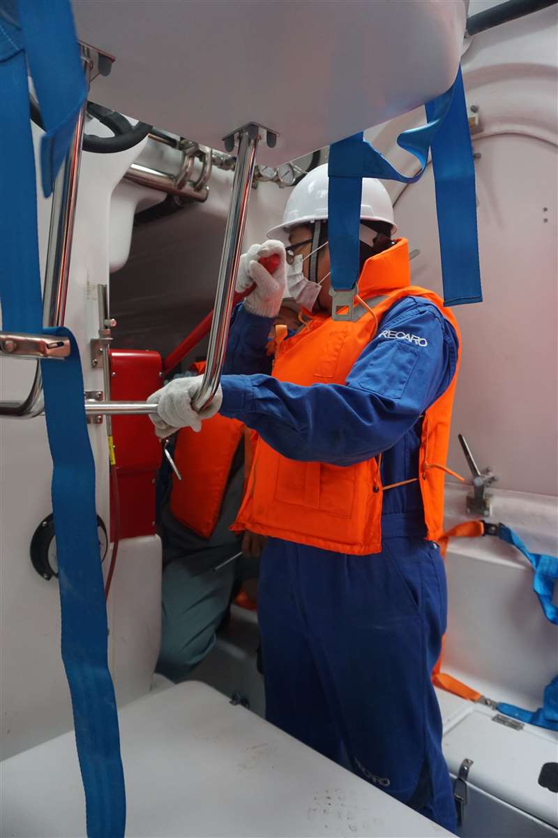 救生艇内部操作训练